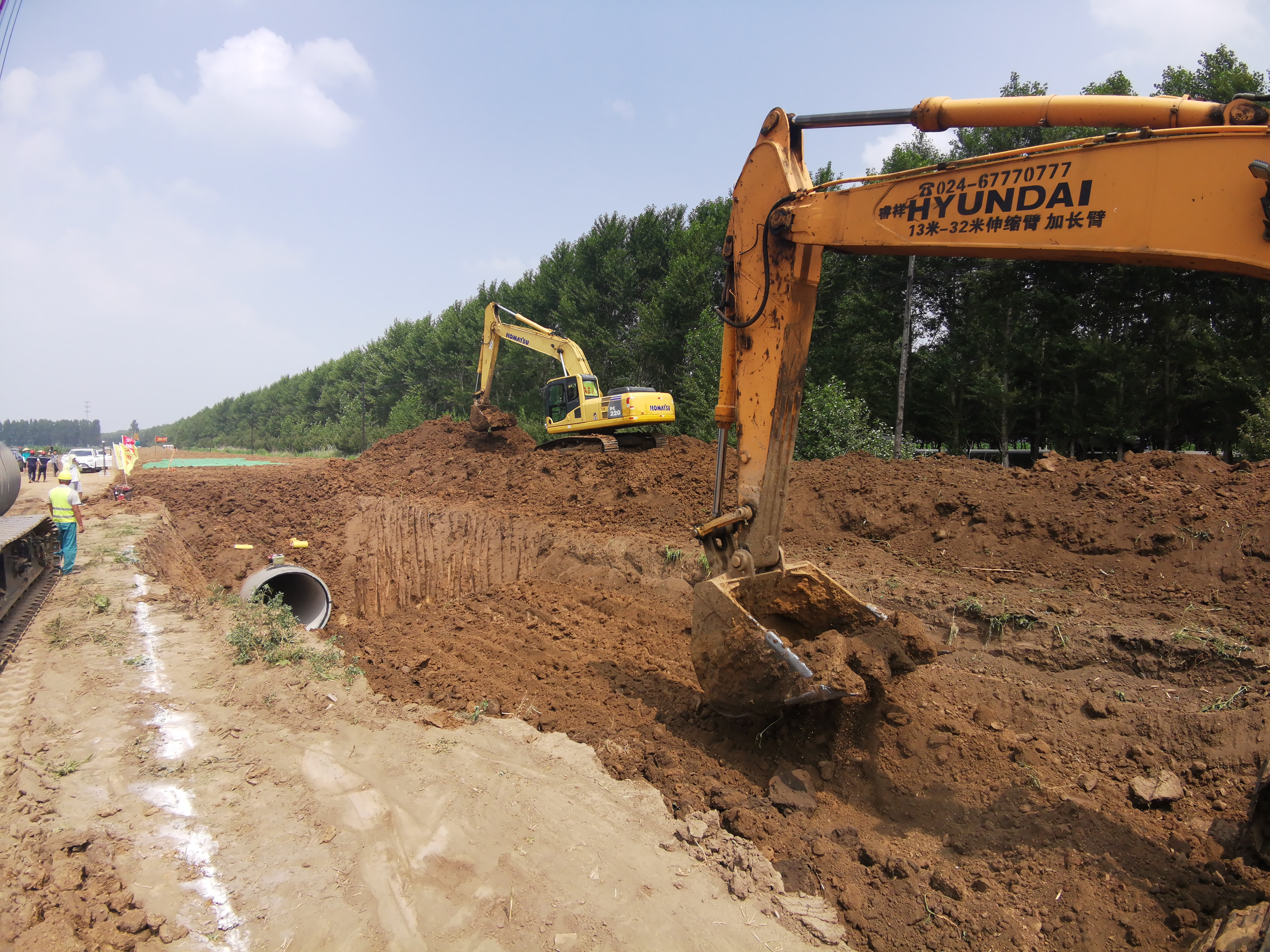 7月3日上午,记者在后腰堡村中铁大桥局集团有限公司承建的二标段施工现场看到,施工单位采取分段作业,同步施工的方式,分5个施工作业面全面展开工作,工程投入大型机械上百台次,参建技术人员50多人。后腰堡村的施工标段是目前全线推进的辽西北供水沈北新区配套管网工程的重点工程。据介绍,此次建设的辽西北供水配套管网工程为长距离输水工程,主要位于沈北新区和大东区,包括原水输水管道工程和净水输水管道工程,长度分别为1.85公里、71.91公里。工程包括东线和北线两条线路。