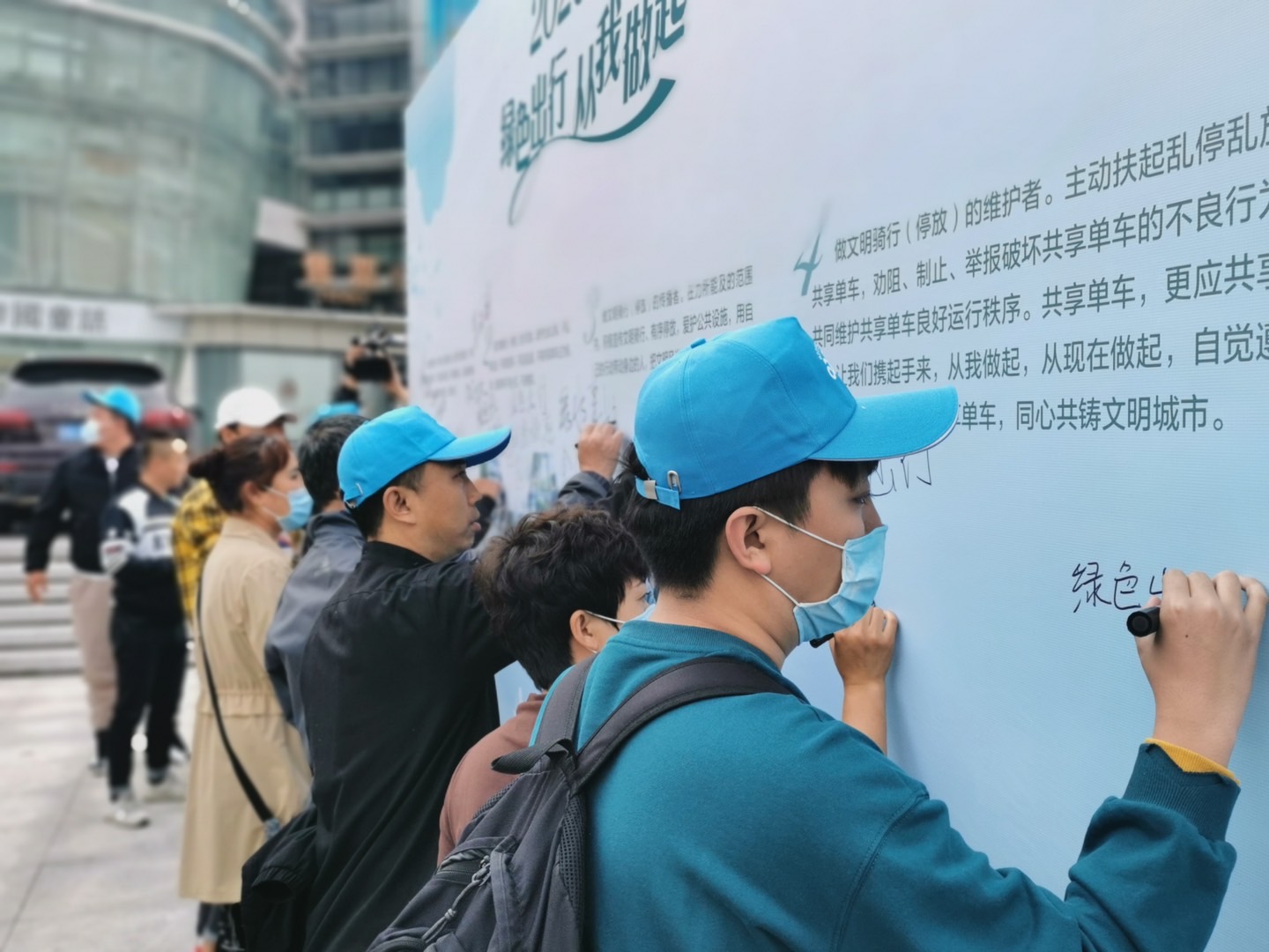 9月22日世界无车日,沈阳市城乡建设局开展了“绿色出行 从我做起”共享单车宣传活动。当天,很多市民参与了主题签名活动,单车企业也通过赠送月卡等方式引导和鼓励市民绿色出行。