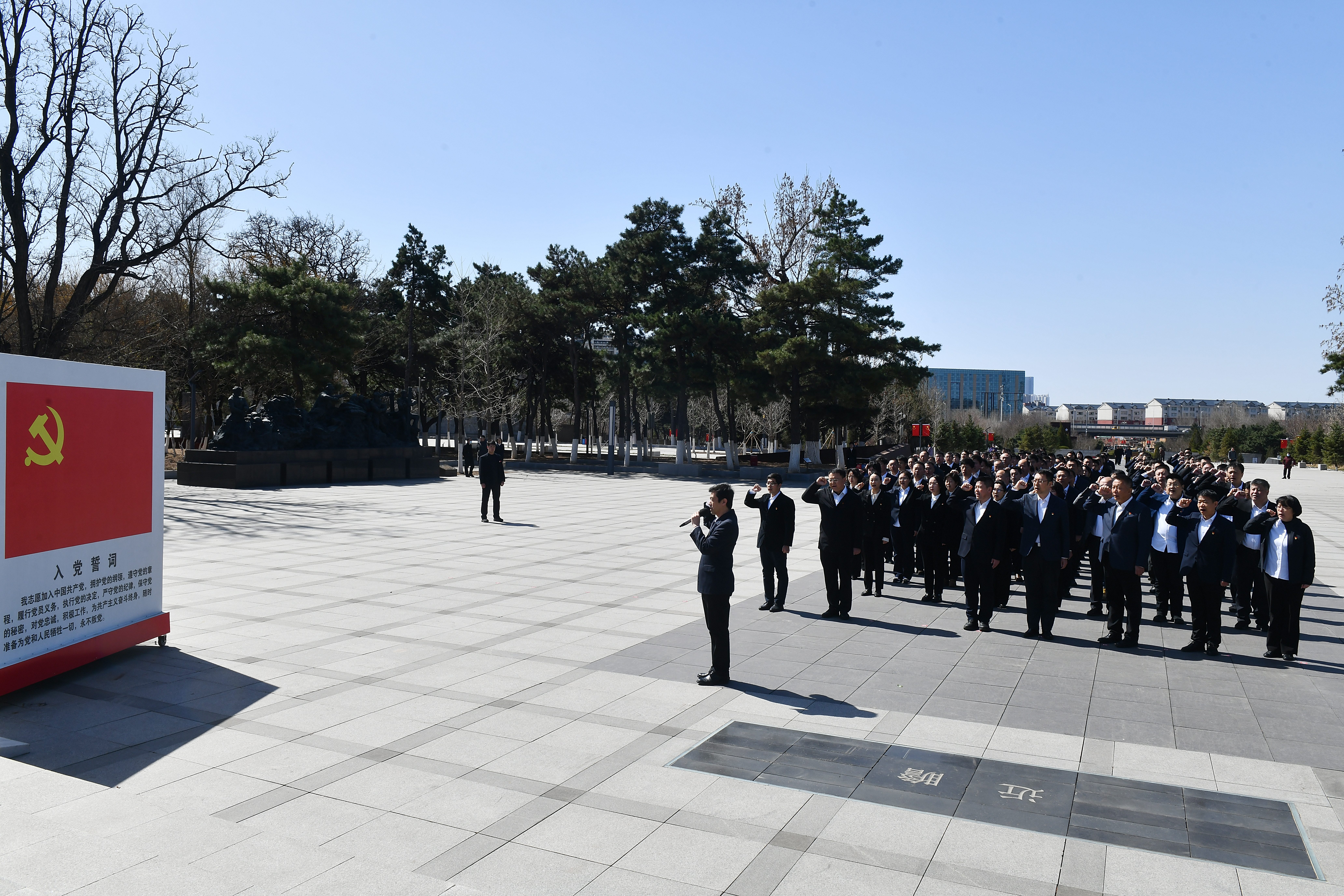 在纪念碑前,全体党员面对鲜红的党旗,在领誓员带领下,举起右拳重温入党誓词。铿锵有力的誓言回荡在陵园上空,不仅是对党的庄严承诺,更坚定了党员干部“不忘初心、牢记使命”的理想信念,为树立和践行正确政绩观筑牢思想根基。